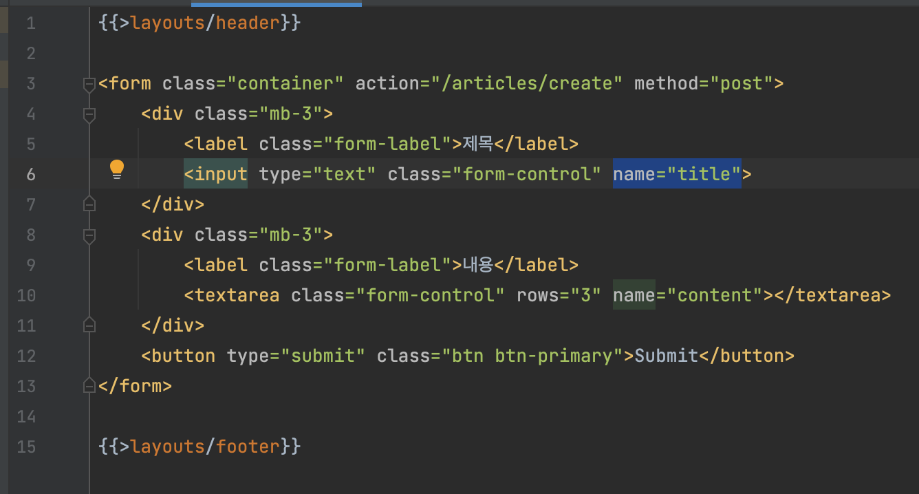 /articles/new 의 ui, submit 시 /articles/create를 POST 요청한다